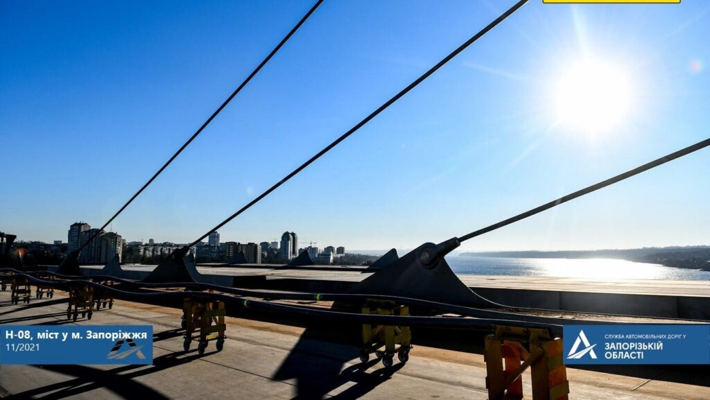 В Запорожье на флагмане президентской программы «Большое строительство» – на самом высоком мосту Украины – уже смонтировали 26 вант