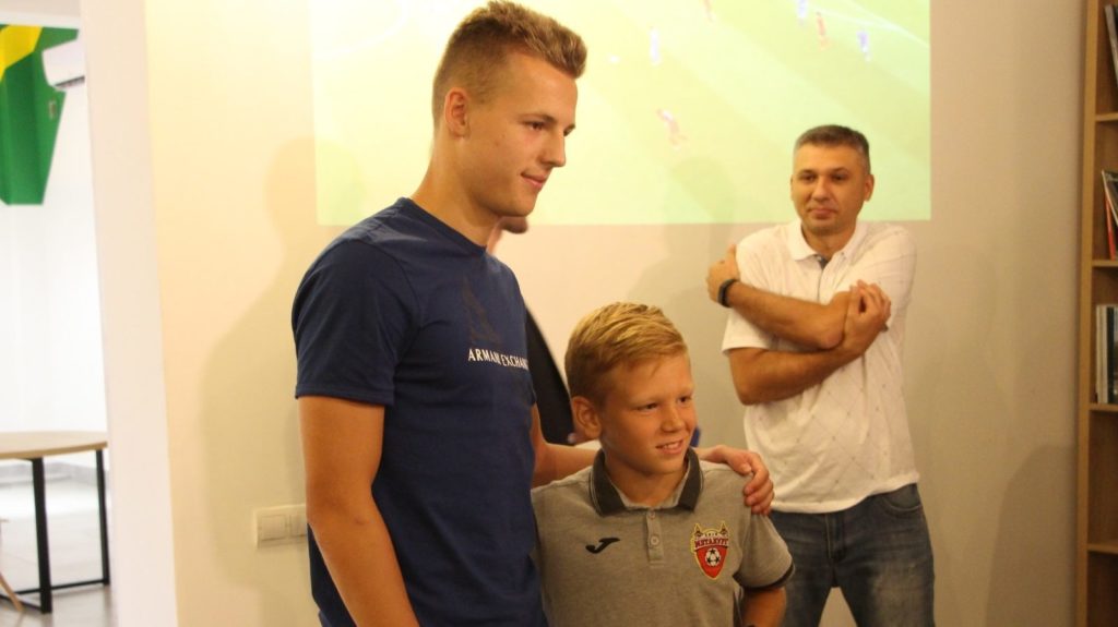 Во время встречи юные воспитанники ДЮСШ «Металлург» расспрашивали Александра о тренировках, участии в чемпионате, и о том, какие матчи были наиболее тяжелыми. После общения состоялась фото- и автограф-сессия с молодым футболистом.
