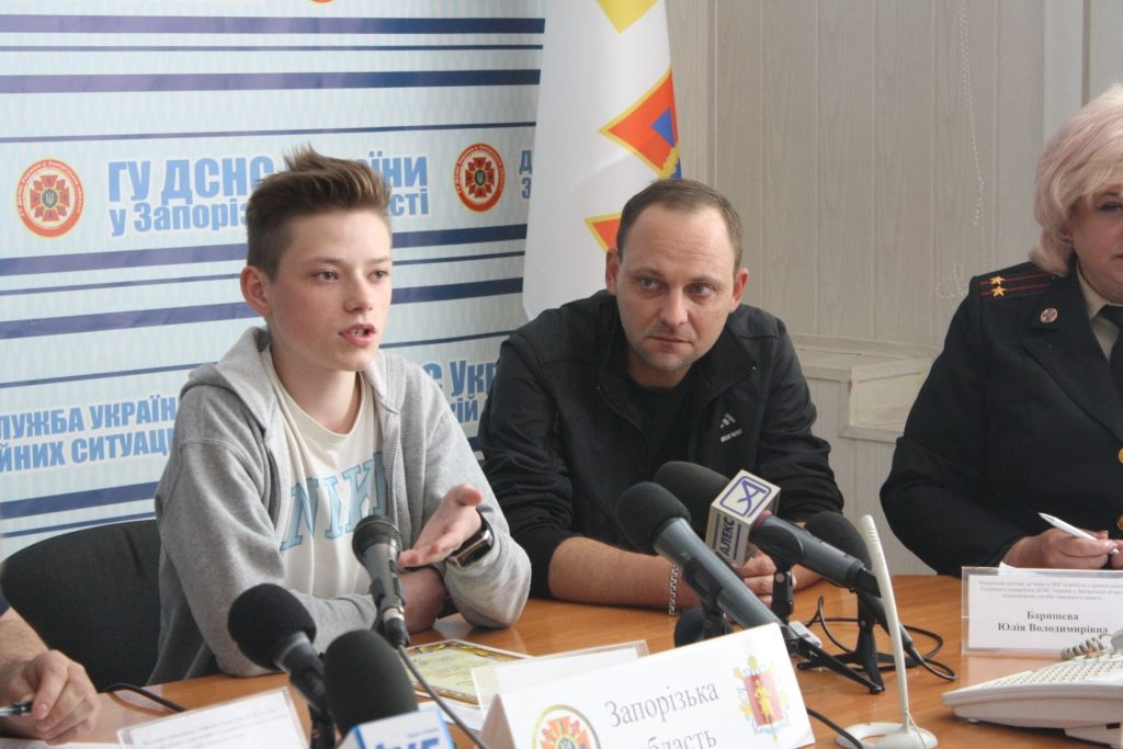 Вчера, 10 мая, в здании ГУ ГСЧС в Запорожской области спасатели наградили 14-летнего парня Кирилла Гуреева, который спас ребенка, упавшего в канализационный люк.