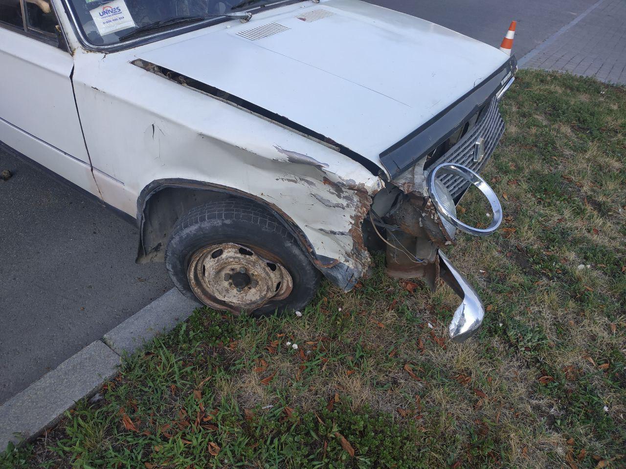 В Запорожье напротив мэрии «Жигули» после ДТП вылетел на зеленую зону – ФОТО