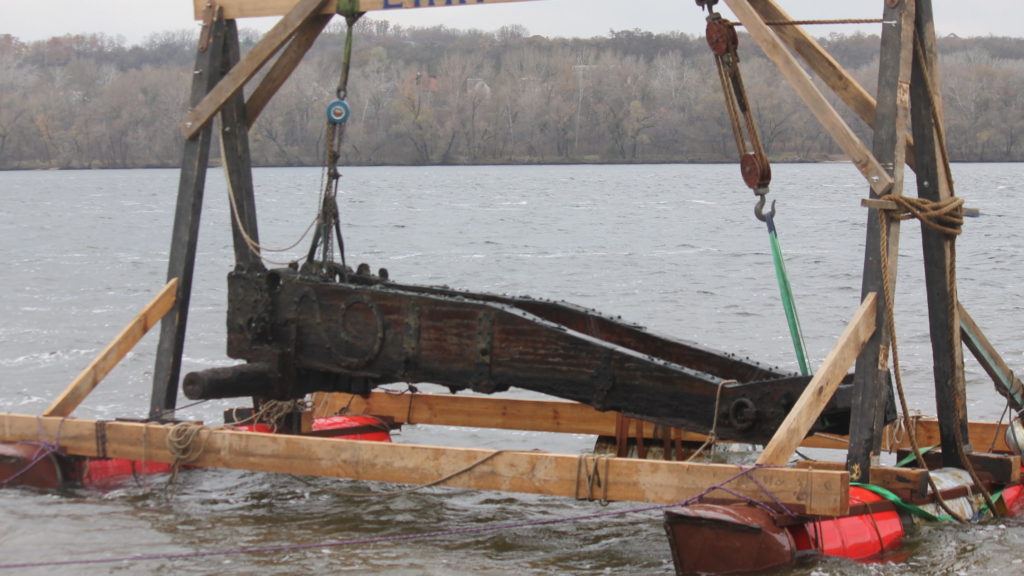 Сегодня, 24 ноября, в Запорожье презентовали общественности уникальную гидроархеологическую находку, которую обнаружили на дне Днепра в районе села Каневское, – пушечный лафет казацкого времени.