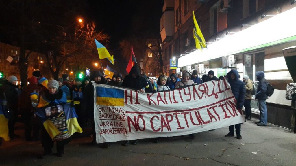 Сегодня, 21 ноября, в центре Запорожья люди вышли на улицу и провели шествие ко Дню Достоинства и Свободы.