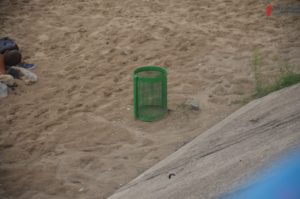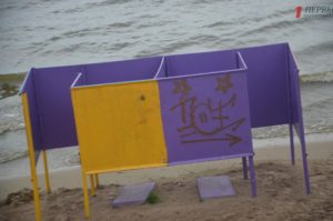 Напомним, что к началу пляжного сезона коммунальные службы на территории пляжа провели очистку береговой зоны от водорослей и мусора, организовали поверхностную уборку песка, выкрасили раздевалки и урны (благо на недостаток урн на этой территории не приходится жаловаться, в отличии от Центрального пляжа), перекрасили перила и шлагбаум.