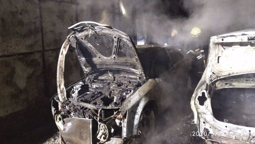 На месте происшествия горели два автомобиля «Аudi» и «Renault» на общей площади 25 квадратных метров. В результате пожара была повреждена передняя часть легковушки «Оpel Vektra», который стоял рядом.