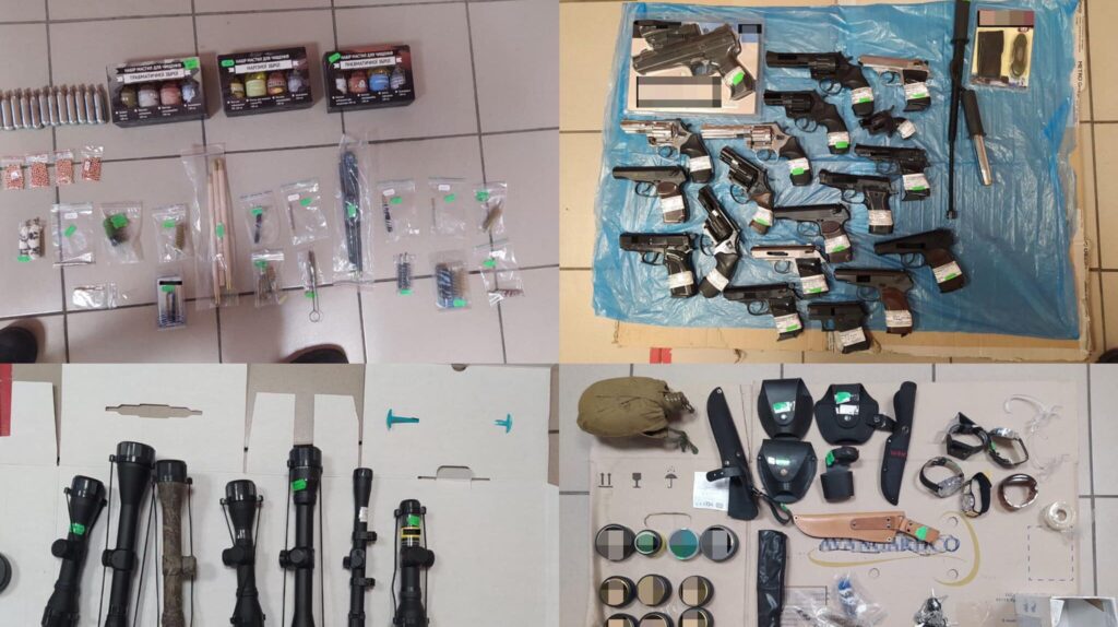 Во время проверки у обоих мужчин полицейские обнаружили пистолеты. Обследовав территорию вблизи магазина, патрульные обнаружили 2 лома, огнестрельное оружие и два пакета с похищенными вещами.