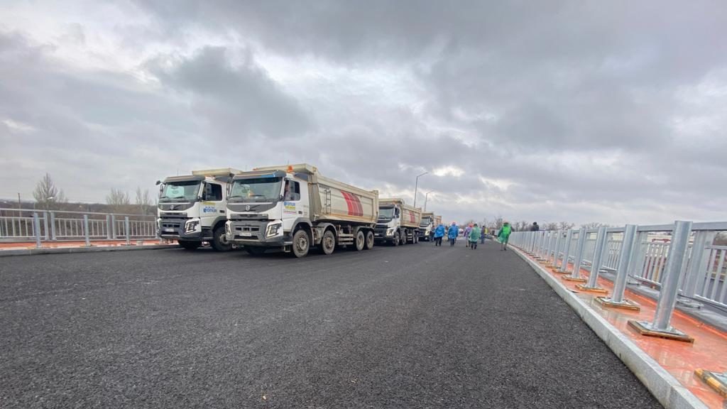 По новому мосту проехали 8 грузовиков по 34 тонн каждый. Замеры проводились на нескольких точках до, после, и постепенно с движением грузовиков. Результаты будут озвучены уже сегодня.