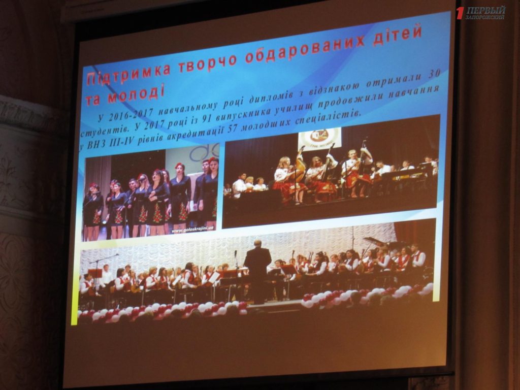По словам чиновника, одним из приоритетов работы департамента является поддержка творчески одаренных детей и молодежи. Показательно, что в 98 международных, всеукраинских конкурсах исполнительского мастерства и изобразительного искусства участвовали 810 учеников, из них 175 заняли первые места.