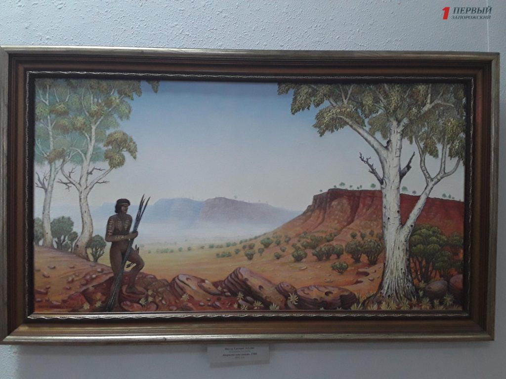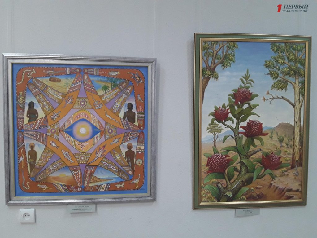 Отметим, что экспозиция разделена на две секции. На первом этаже размещены работы Грозного, в основе которых художник использовал украинский сюжет, а на втором этаже — австралийский.