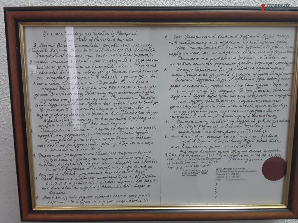 Интересен тот факт, что летом 1988 года Виктор Грозный посетил Запорожский край. Встреча с родиной подтолкнула его подарить областному музею свои многочисленные картины. Преодолев большое расстояние и все преграды, 13 ящиков, в которых находились произведения художника, попали в музейные фонды. Всего в областном музее насчитывается 321 работа нашего земляка.