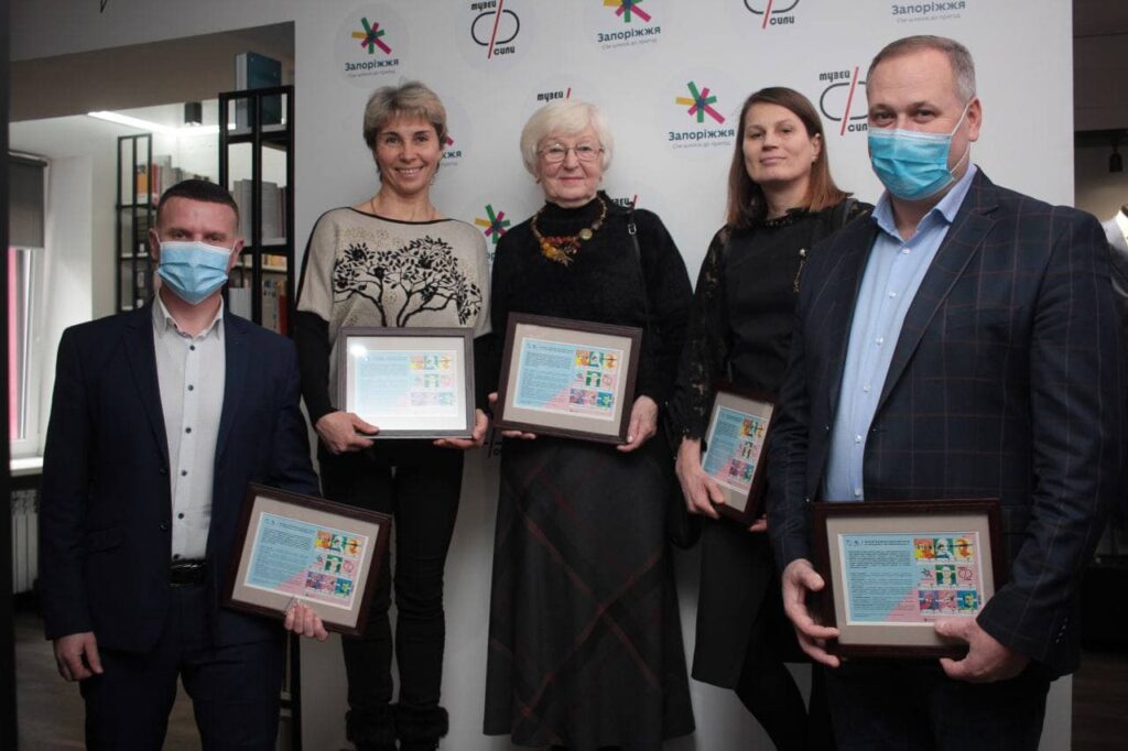 На открытии музея Анатолий Куртев вручил также известным запорожским спортсменам коллекцию марок с портретами наших олимпийцев, авторства известного столичного муралиста Александра Корбана.