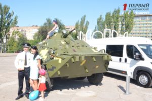 Кроме того, по завершению официальной части мероприятия, все присутствующие могли осмотреть выставку техники и оружия, которые используют в работе правоохранители. Запорожцы, с радостью, фотографировались со спецтехникой, а также различным вооружением и обмундированием: пистолетами, автоматами, гранатометами, бронежилетами.