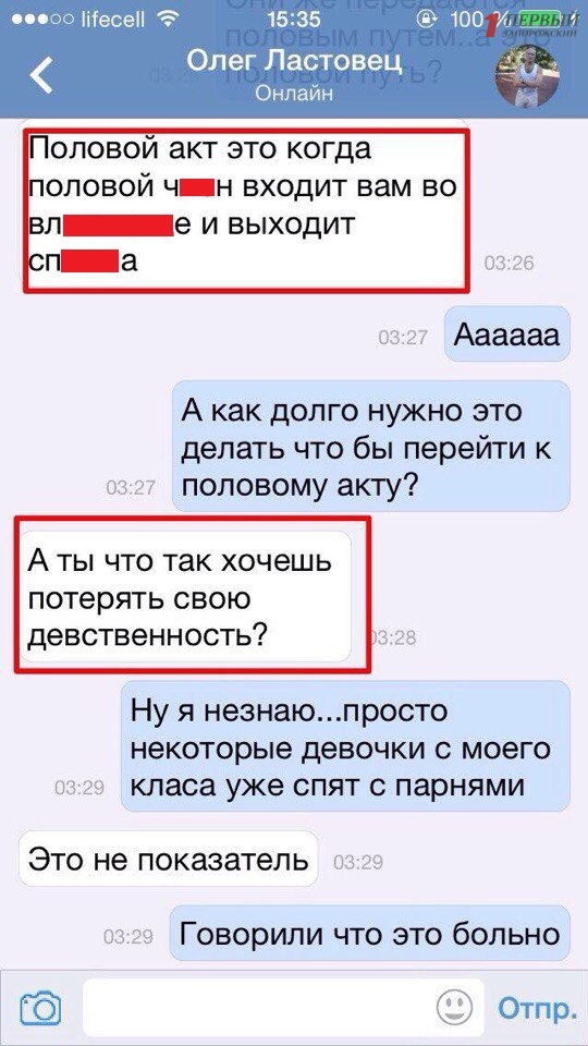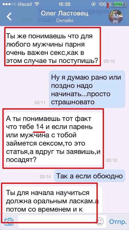 На этот раз на «на горячем» попался 34-летний Олег Л., проживающий в селе Куприяновка Вольнянского района. Мужчина вел переписку с 14-летней девочкой (фейковая страница активистов — прим.ред.), в которой склонял ее к интиму, присылал фото и видео порнографического содержания. Встречу с ребенком назначил на свой день рождения, 21 марта.