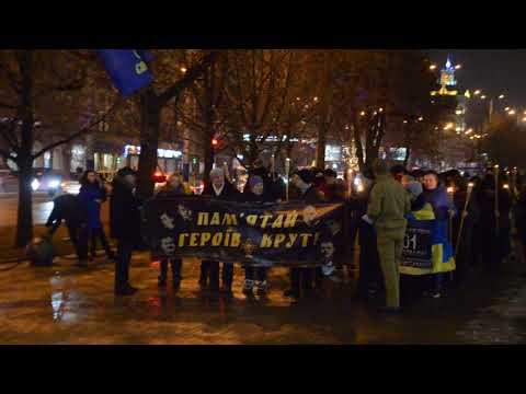 В конце участники подожгли факелы и попытались зажечь красные лампадки, которыми выстелили слово «Крути», однако из-за сильного ветра им не удалось этого сделать. Под конец акции активисты почтили минутой памяти погибших героев.