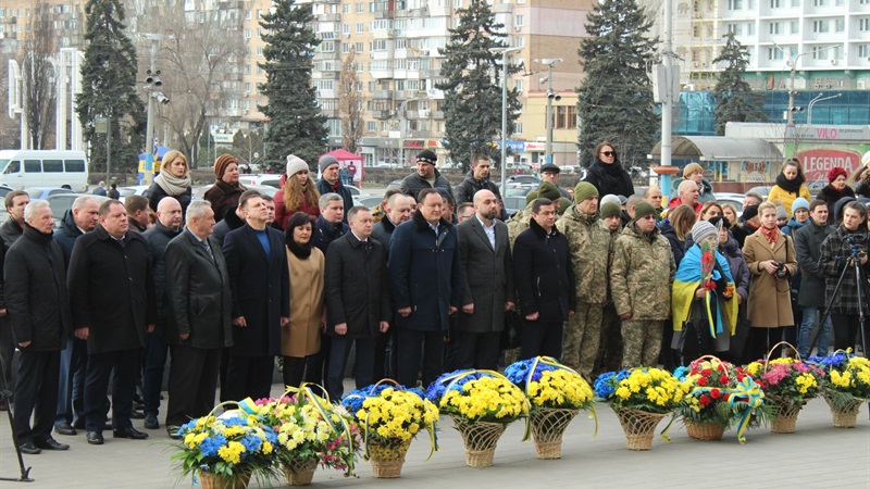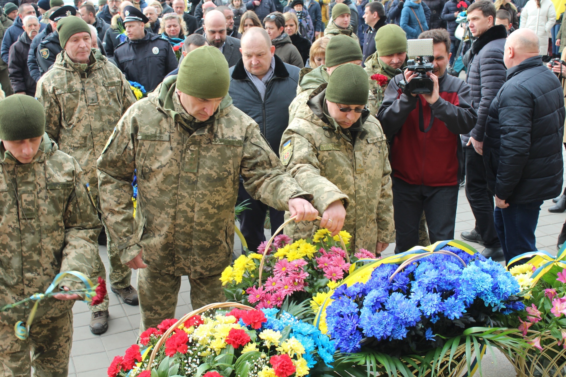 Почтить память погибших на площадь Героев пришли представители областной и городской власти, военнослужащие 55-й артиллерийской бригады и Нацгвардии, священнослужители, студенты, школьники и неравнодушные горожане.