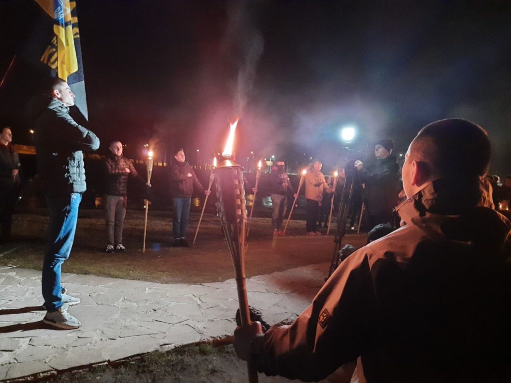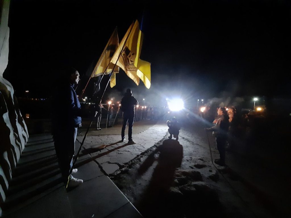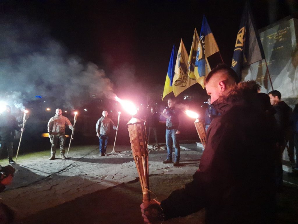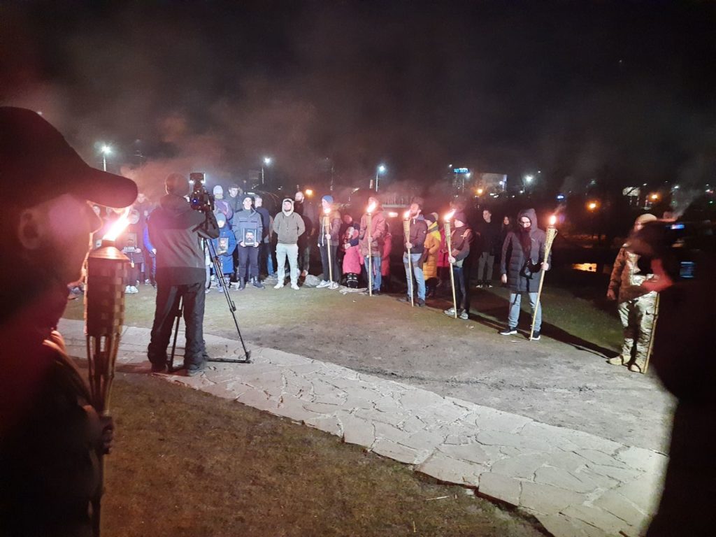 Во время Широкинской операции погибли 14 бойцов полка «Азов». В память подвига каждого из павших героев символично зажгли по факелу.