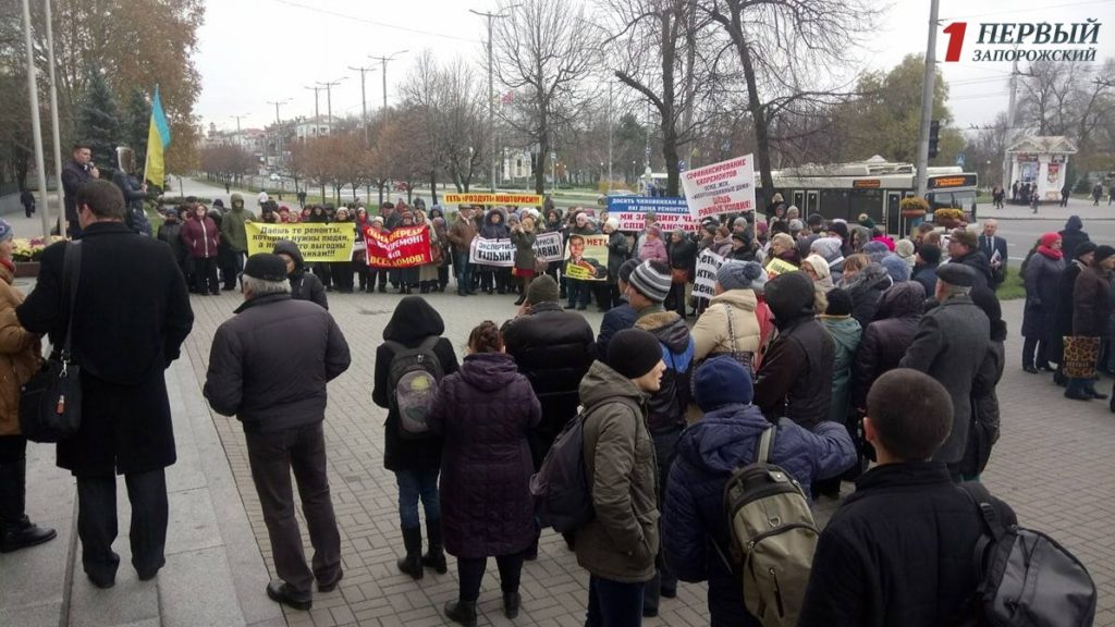 Второй митинг снова проводят обиженные сотрудники «Запорожского завода высоковольтной аппаратуры». В понедельник они просили содействия областной власти, а сегодня пришли под стены городского совета.