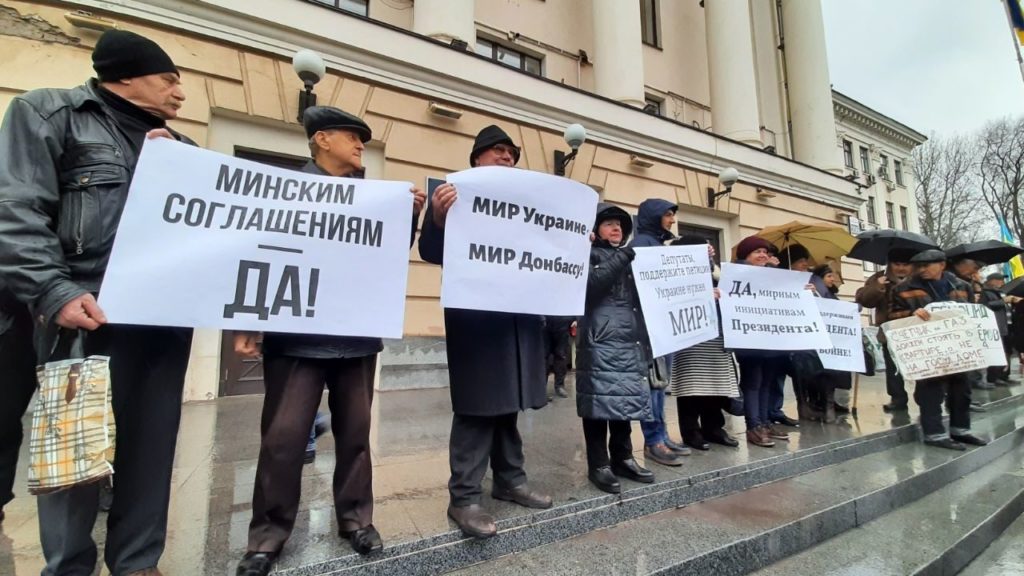 Сегодня, 27 ноября, перед заседанием Запорожского городского совета провели акцию в поддержку мирных инициатив президента.