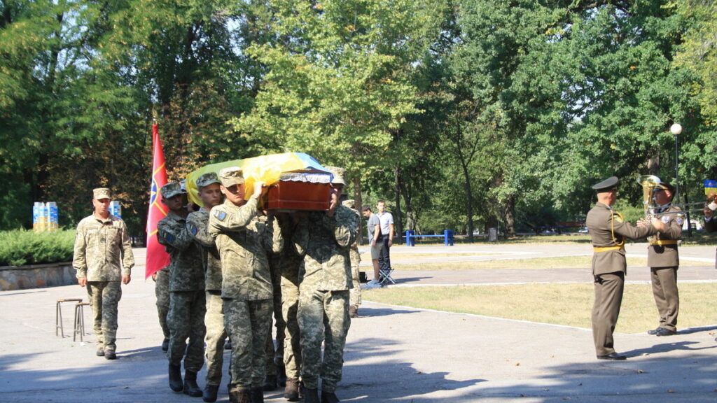 Присутствующие на церемонии прощания помянули погибшего воина минутой молчания, а командиры и боевые побратимы теплыми словами провожали в последний путь героя.