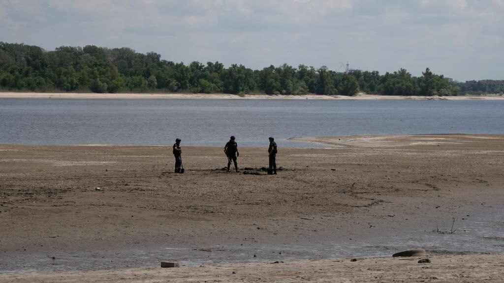 В связи с подрывом Каховской ГЭС и падением уровня воды в Днепре и на его берегу стали чаще находить взрывоопасные предметы.