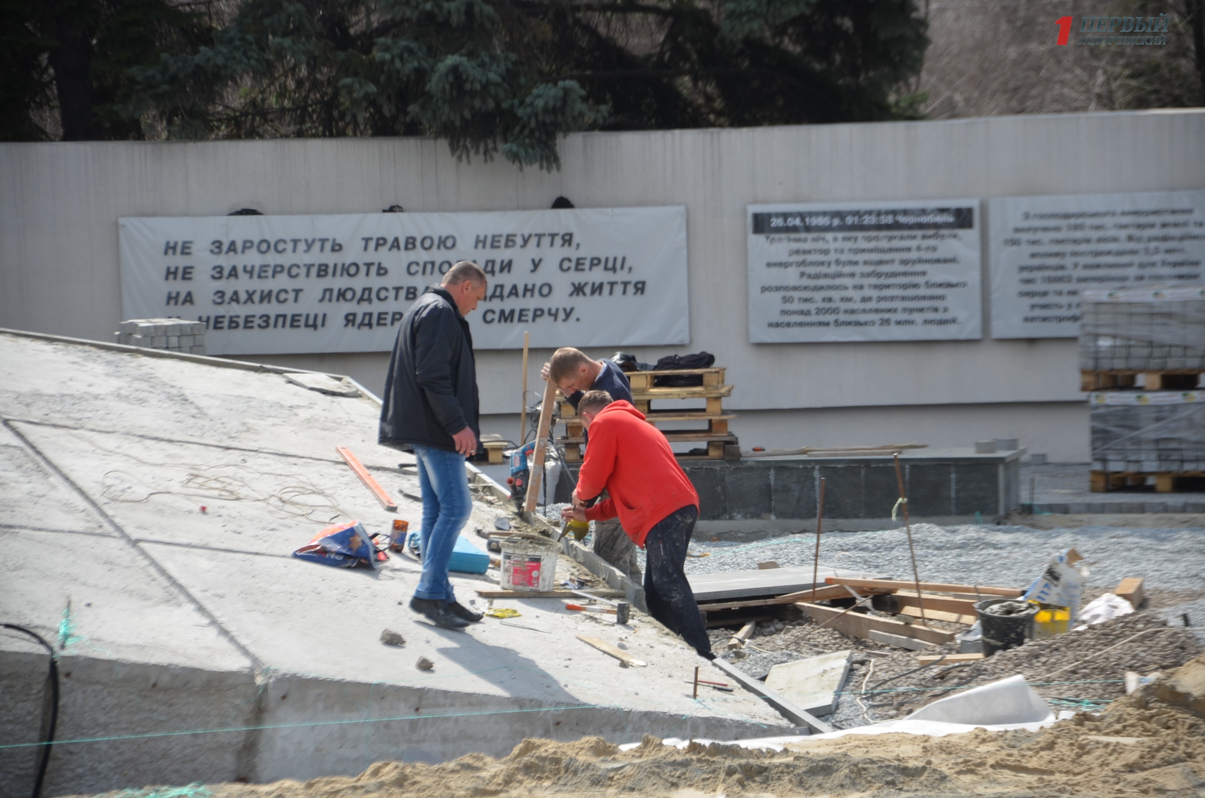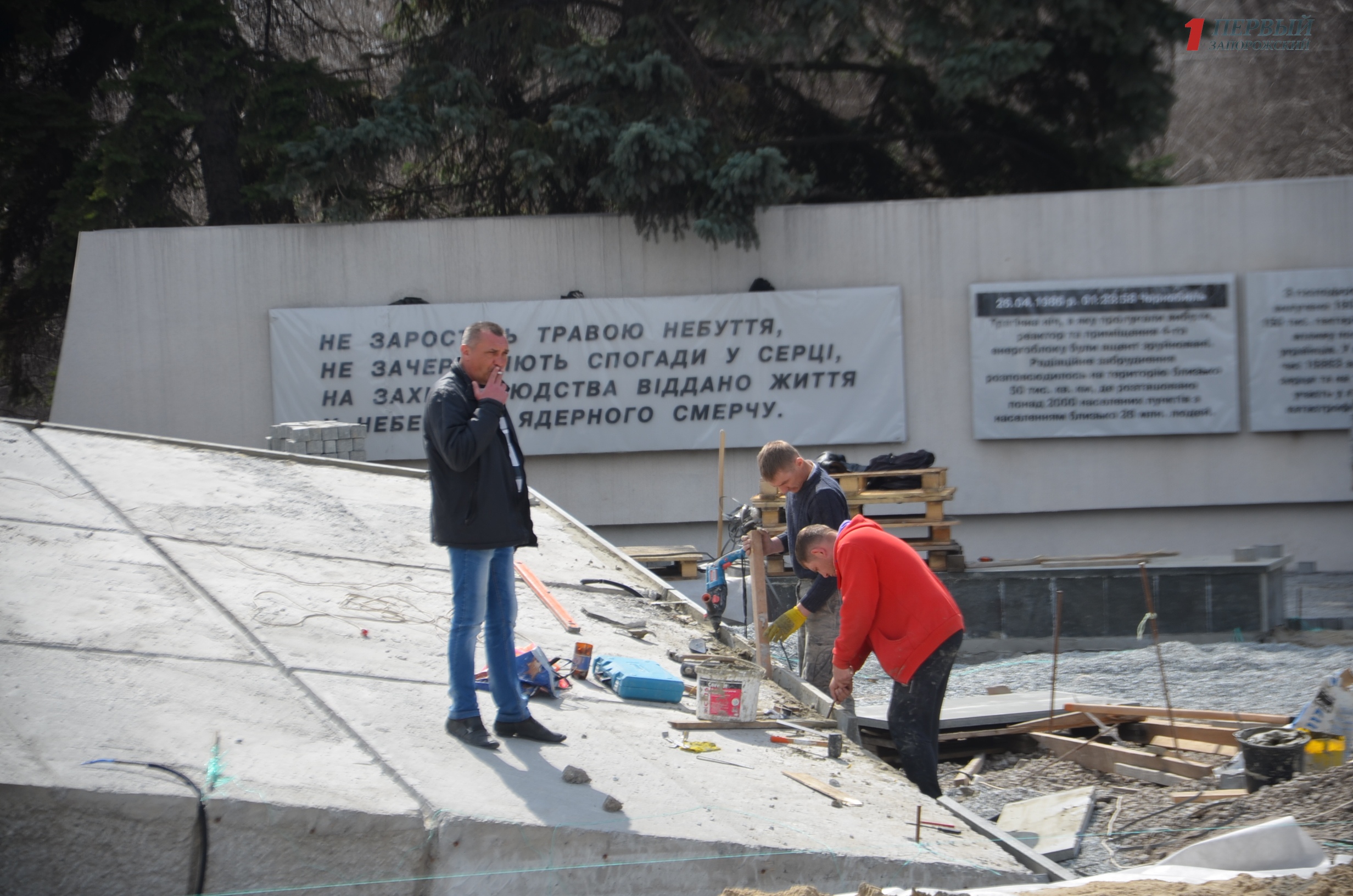 Отметим, что ранее бригада строителей провела земляные работы, положила плитку на пешеходной зоне и вокруг мемориала, сделала ступеньки и выполнила реконструкцию бетонных плит с информационной доской, которые остались от «Тревожной молодости». Сейчас по периметру памятного знака выравнивают почву для укладки плитки, брусчатки, установки скамеек и цветочной клумбы. В ближайшее время рабочим еще предстоит установить декоративную подсветку на самом мемориале. Ввиду этого, теоретически, все работы могут быть выполнены в срок — до 26 апреля.