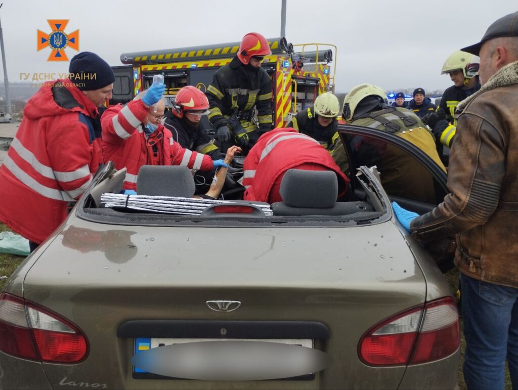 В воскресенье утром в Запорожье произошла серьезная авария. Водитель легкового автомобиля врезался в отбойник. На месте происшествия работали спасатели, полиция и врачи «скорой помощи».