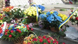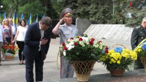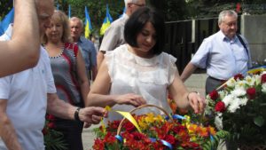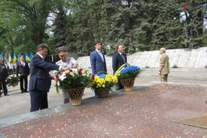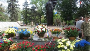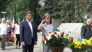 Около мемориала, расположенного в Днепровском районе города, собрались сотни запорожцев — представители власти, военные, ветераны, студенты, школьники, общественные активисты и просто неравнодушные запорожцы.