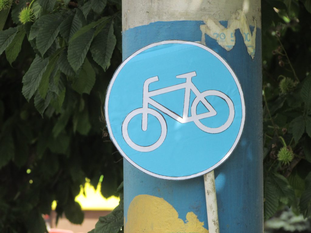 Также велоактивисты нарисовали импровизированную велодорожку и поставили временный дорожный знак.