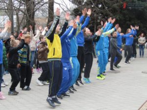 Сегодня утром, 7 апреля, в честь Всемирного Дня здоровья во дворе школы высшего спортивного мастерства состоялось масштабная утренняя зарядка.