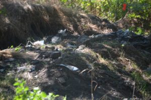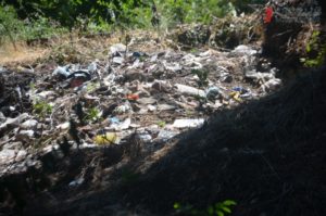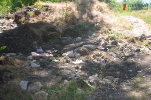 Местные жители считают, что это отдыхающие пляжа на Кичкасе сваливают мусор около рельсов. Здесь свален в кучу пластик, бумага, полиэтиленовые пакеты и даже строительный мусор, (который по всей видимости занесли в зеленую зону жители частного сектора).