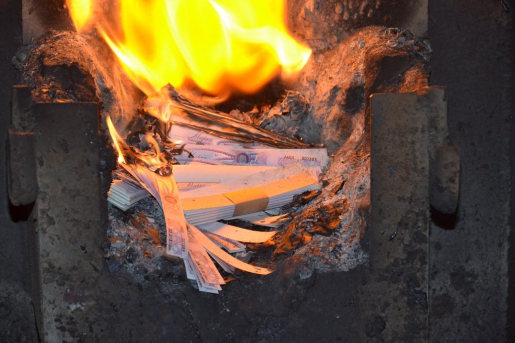 Как сообщает пресс-служба ведомства, сначала была проведена инвентаризация таких марок, после чего состоялась процедура их уничтожения путем сжигания в цеху одного из запорожских промышленных предприятий.