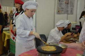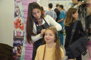 На выставке каждое учебное заведение презентовало свои наработки и преимущества. Приятным бонусом стали сюрпризы от профтехучилищ — кулинары порадовали гостей блинами, парикмахеры и визажисты — прическами и макияжем.