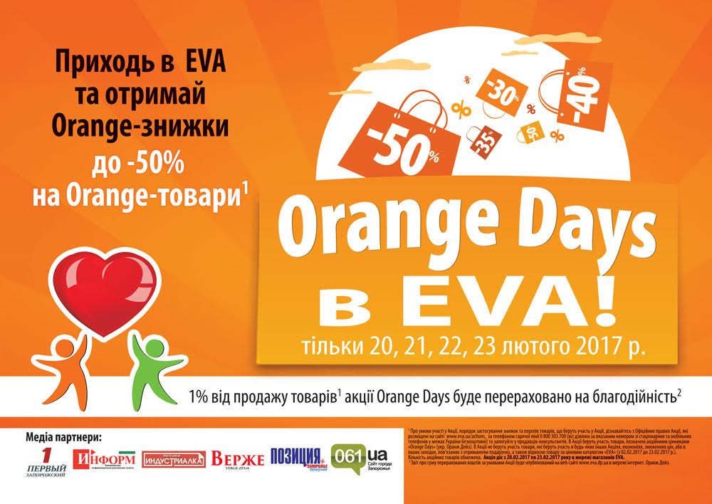 В Запорожье стартует проект «Orange Days» в поддержку центров с новорожденными детьми. В период с 20 по 23 февраля при покупке товаров с оранжевыми ценниками в Линии магазинов EVA, 1% от их стоимости будет перечисляться на приобретение нового оборудования для Запорожской городской детской многопрофильной больницы №5.