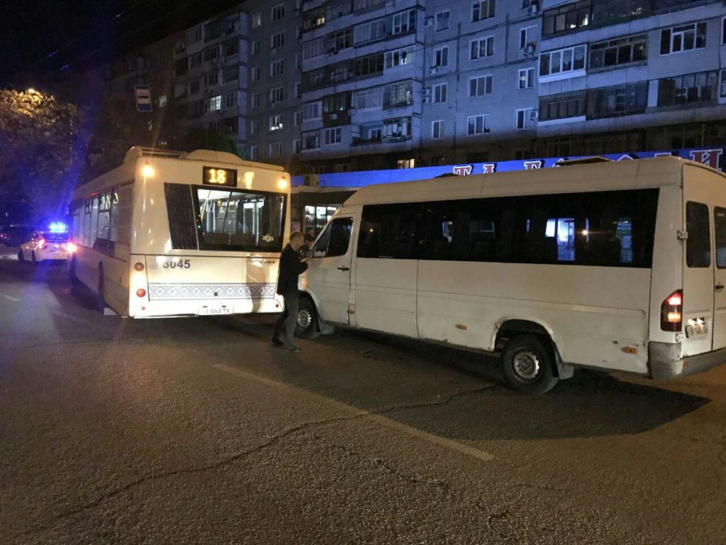 По улице Бородинской водитель автобуса столкнулся с маршруткой.