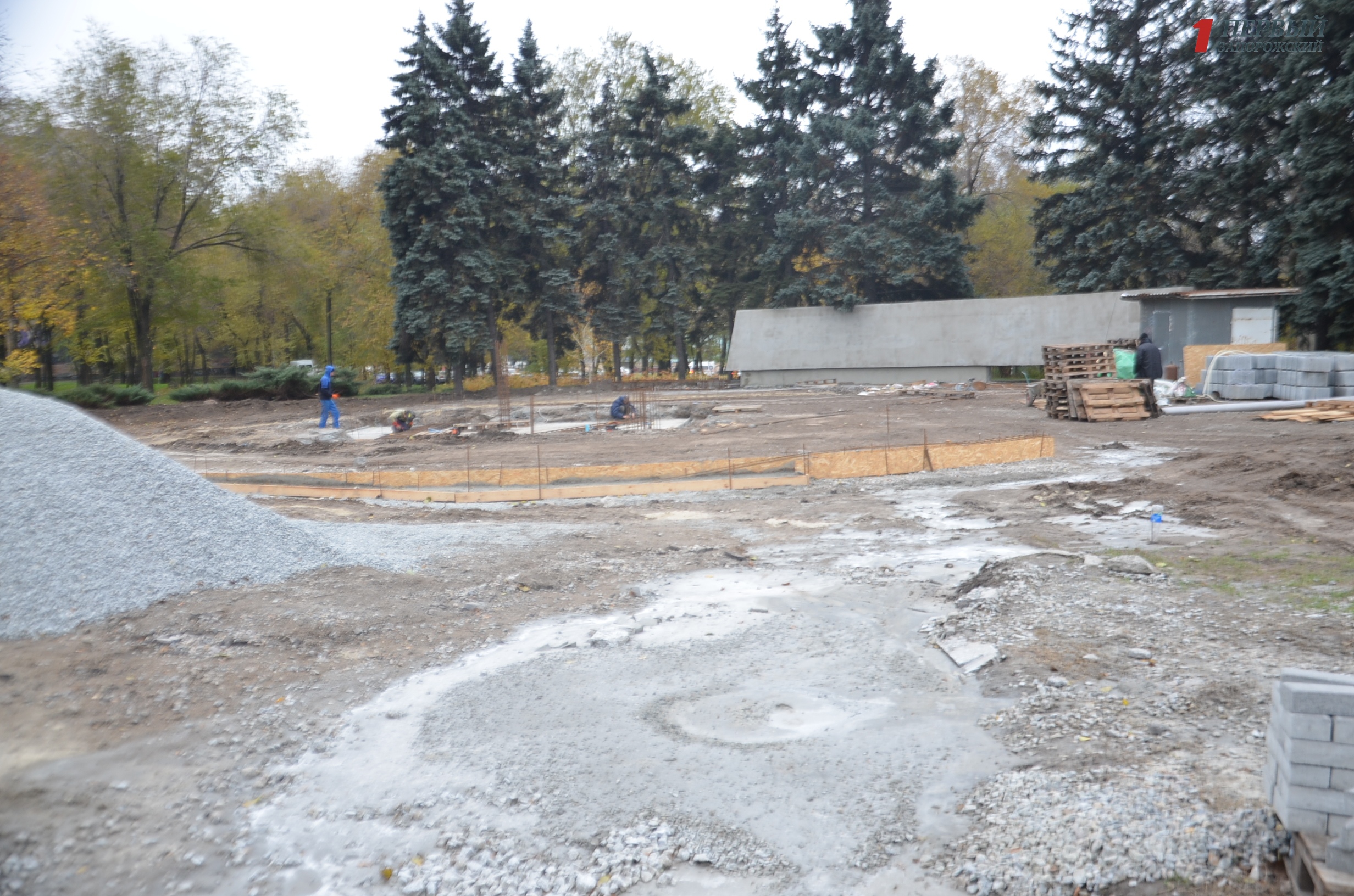 На строительной площадке находятся груды песка, щебня и плитки для укладки. Рабочие утверждают, что следуют четко за графиком и если погодные условия не помешают, а изменения в проект не последуют, то все работы будут закончены к 14 декабря. Собственно именно в этот день в Украине чествуют память участников ликвидации последствий аварии на Чернобыльской АЭС.