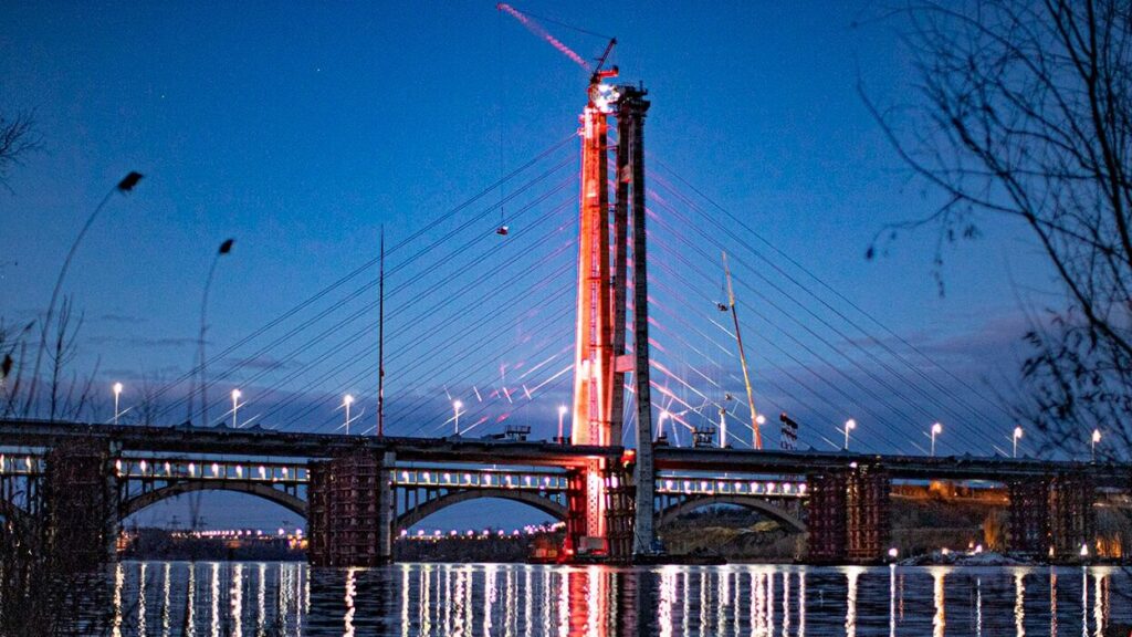 Помимо основных работ по строительству вантового моста рабочие параллельно монтировали светодиоды на вантовых канатах, которые станут частью масштабного декоративного освещения мостов. Ранее была установлена современная подсветка пилона.