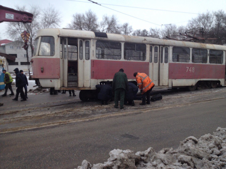 Так, трамвай сошел с рельсов в Шевченковском районе города в районе Зеленого Яра.
