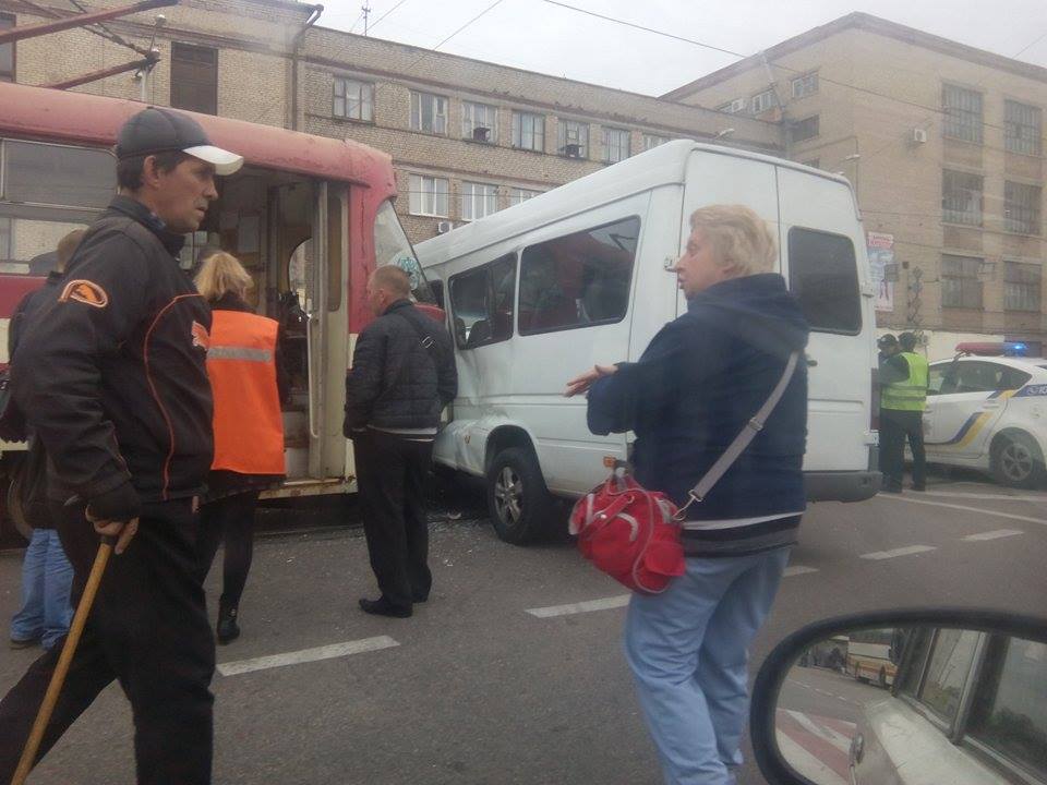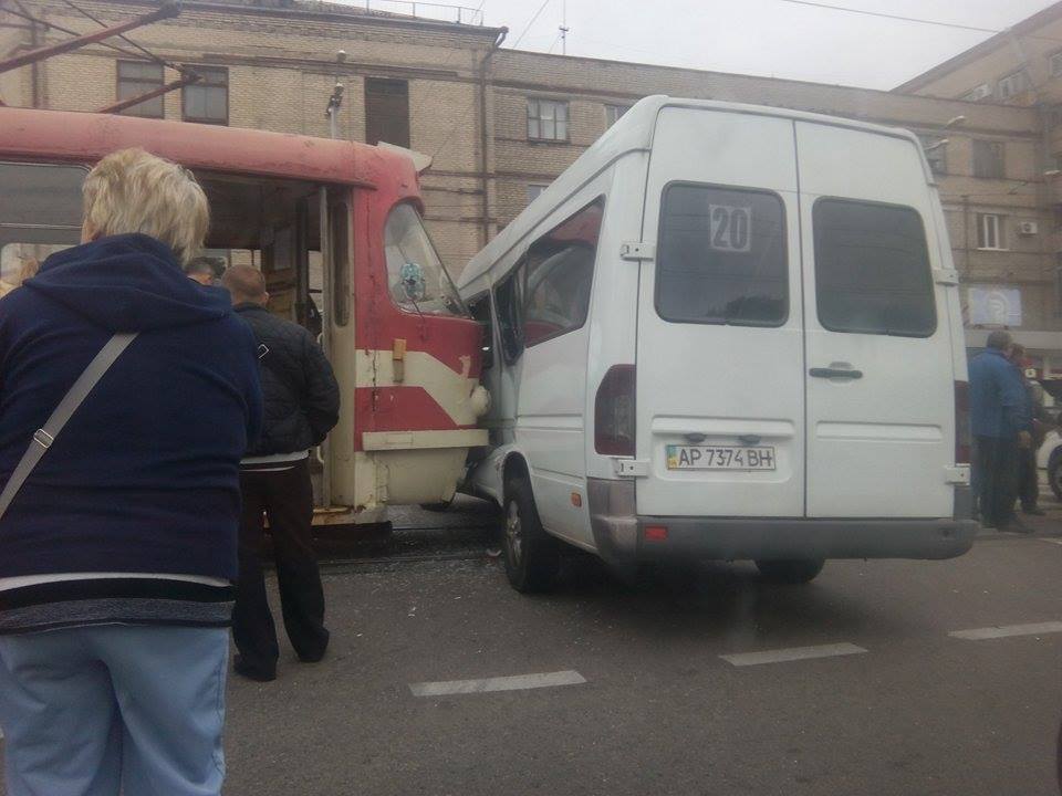 В Запорожье трамвай врезался в маршрутку с пассажирами (фото)