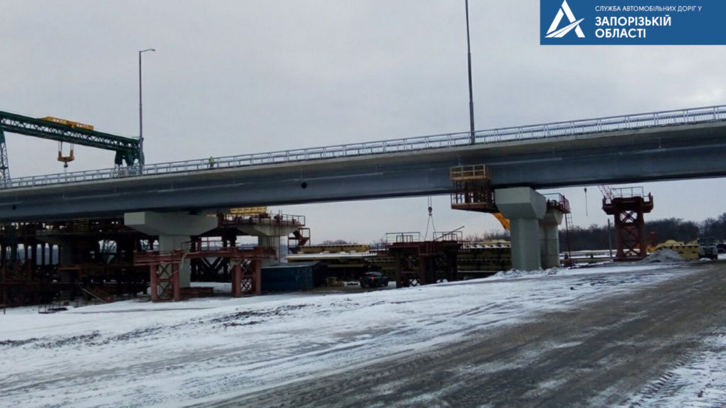 В Запорожье активно продолжаются работы на строительстве балочного моста через Старый Днепр.