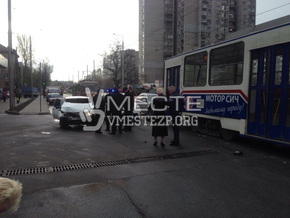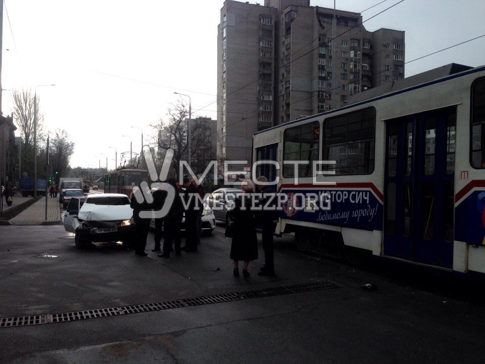 В Запорожье в трамвай снова врезалась легковушка - ФОТО