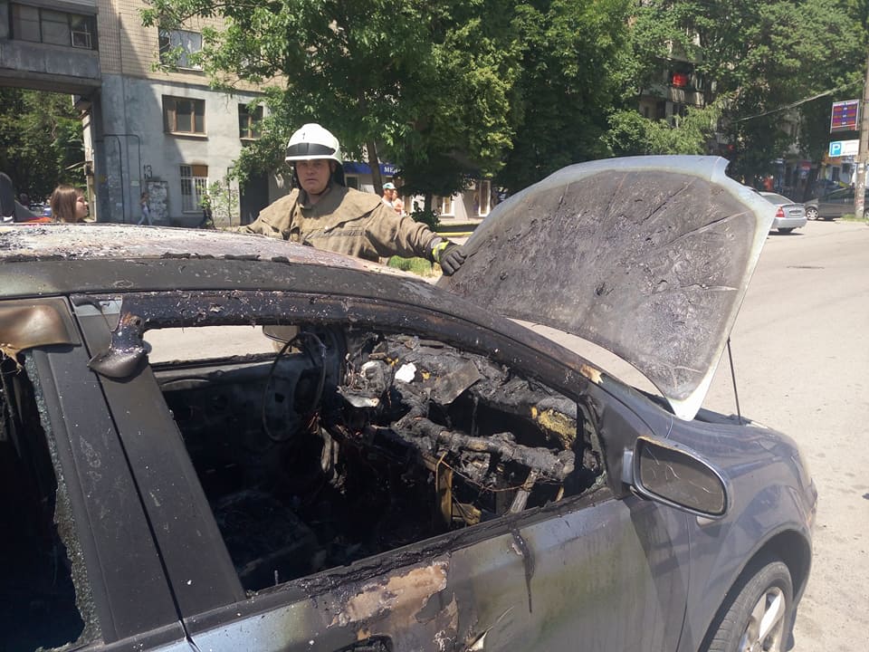 В Запорожье в центре города сгорел автомобиль - ФОТО, ВИДЕО
