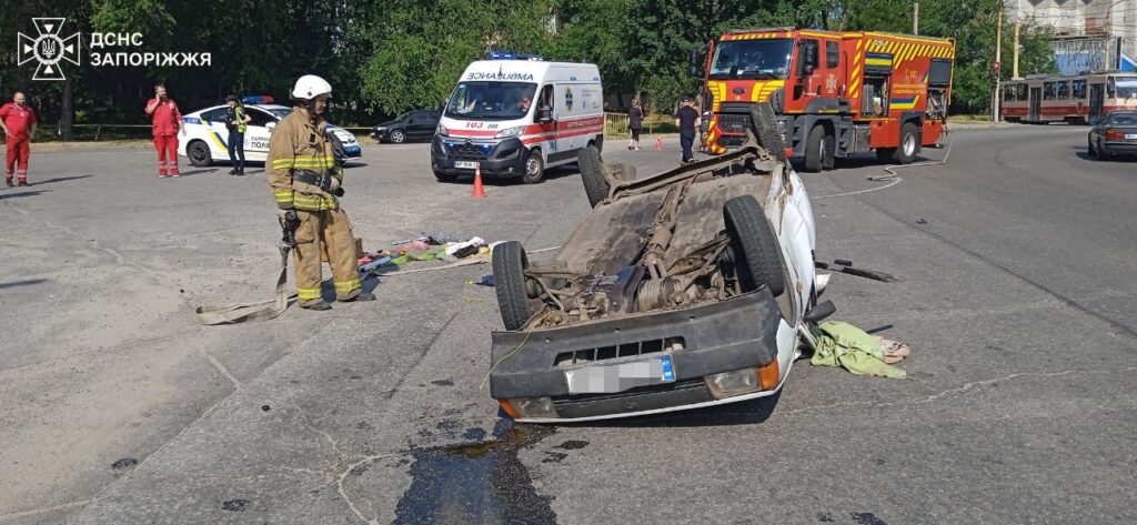 2 июня в Запорожье произошло дорожно-транспортное происшествие. В результате столкновения на крышу перевернулся автомобиль «ЗАЗ». Водитель и пассажир до приезда спасателей самостоятельно вышли из автомобиля. Травмированных на «скорой» госпитализировали в больницу.