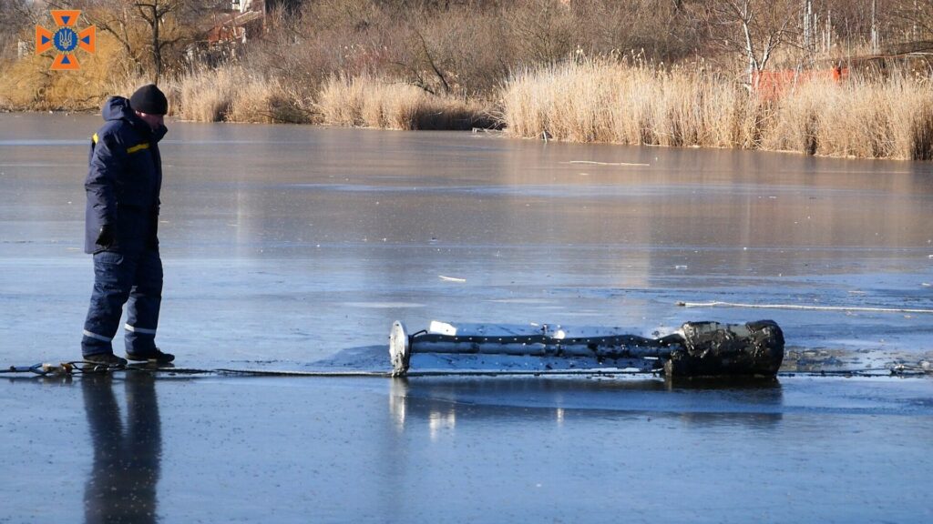 Во время вражеских обстрелов 7 января в озеро на окраине Запорожья упал снаряд. Местные жители сообщили об этом 9 января в Службу спасения «101». На следующий день спасатели провели разведку места, а сегодня, 11 января, достали остатки снаряда и уничтожили.