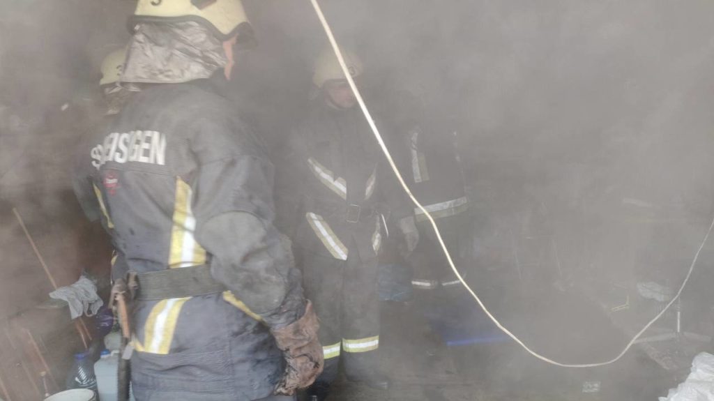 Прибыв на место происшествия, спасатели установили, что в гараже горят вещи и мебель на площади 5 квадратных метров.