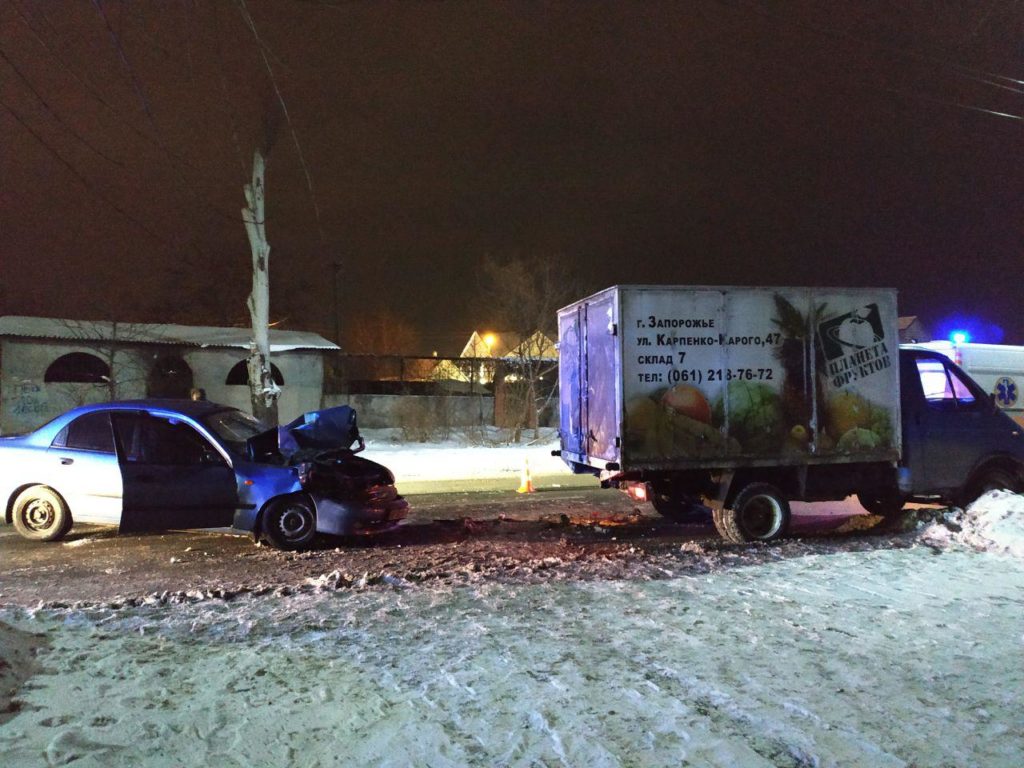 В Запорожье водитель легковушки протаранил фургон с фруктами — ФОТО