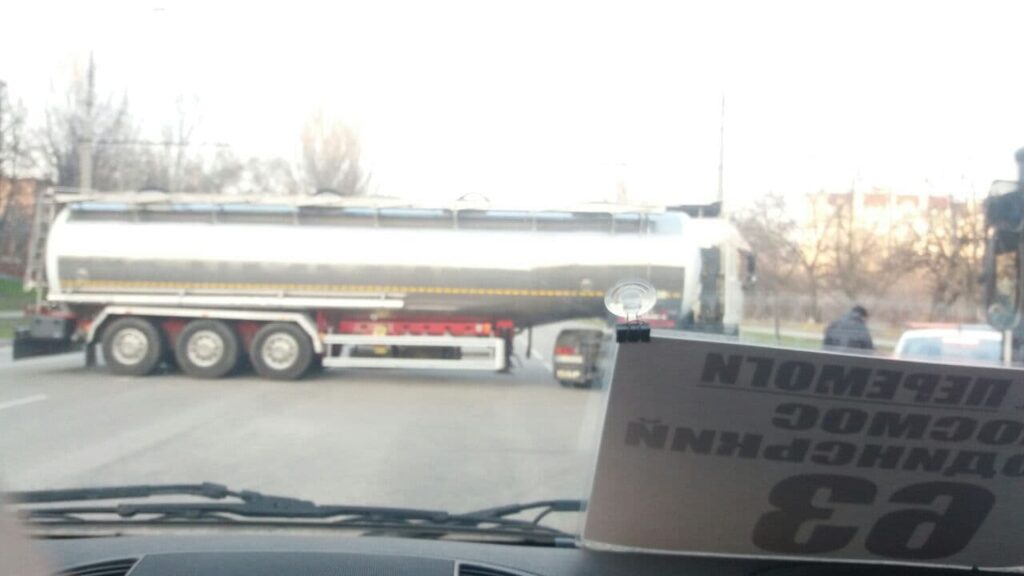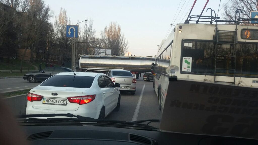 В Запорожье возле 5-й горбольницы цистерна перекрыла дорогу, - ФОТО