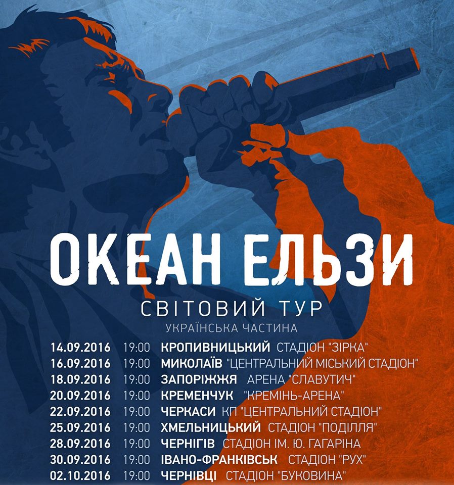 Завтра, 18 сентября, в Запорожье в рамках «Мирового турне 2016-2016» состоится концерт популярной украинской рок-группы «Океан Эльзы».