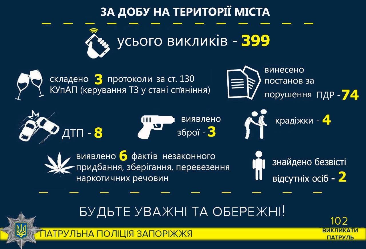 Всего за прошедшие сутки запорожцы 399 раза вызывали полицейских.