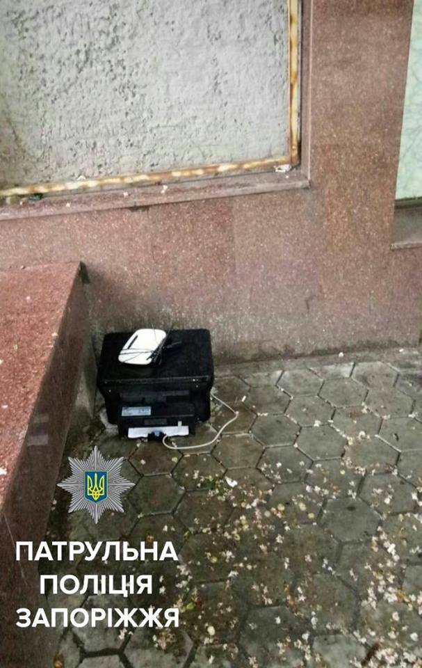 В то же время в пресс-службе ГУ Нацполиции, заявляют о банальном ограблении. Около 5 часов утра сотрудники патрульной полиции Запорожье на проспекте Металлургов заметили мужчину, который нес офисные принадлежности. Увидев полицейских неизвестный оставил технику и скрылся. Патрульные совместно с экипажем государственной службы охраны отработали прилегающую территорию и задержали злоумышленника. Им оказался 23-летний житель Запорожья, ранее судимый за корыстные преступления. Также полицейскими было установлено, что злоумышленник проник в офисного помещения путем повреждения входной двери. Грабитель забрал с собой микроволновую печь, Wi-Fi роутер и зарядное устройство. Общая сумма ущерба составила 21430 гривен.