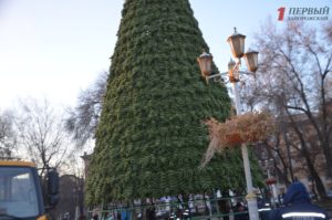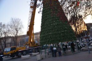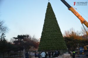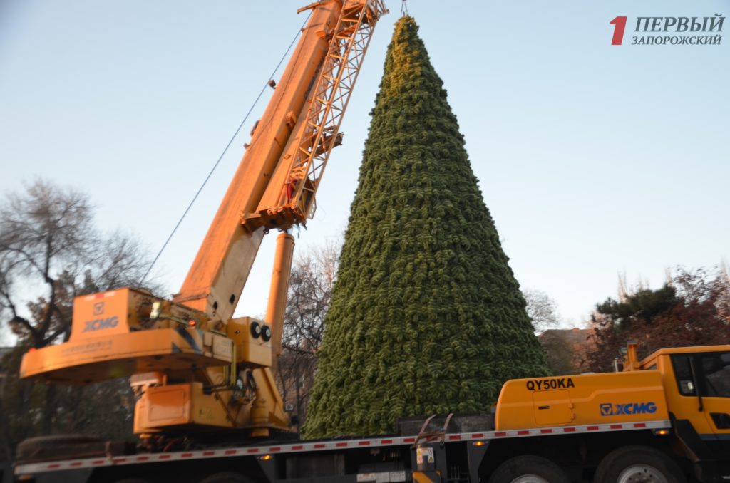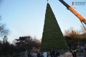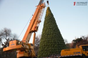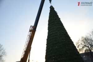 В Запорожье заканчивают монтировать городскую елку на площади Маяковского – ФОТО