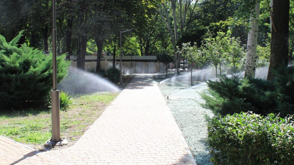 В данный момент подходит к концу первая из четырех запланированных очередей. Уже выполнена укладка плитки на тротуарах, на очереди – обустройство газонов сотрудниками коммунального предприятия «Зеленстрой» и установка автоматической системы иих полива.